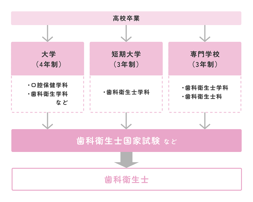歯科衛生士になるためには、大学・短期大学・専門学校のいずれかで3年以上学び、国家試験に合格する必要があります。